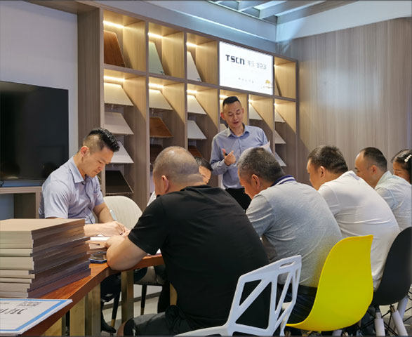 專賣店負責人在工地上,除了管理工地環境與TSCN產品的施工工藝外,隨時把異業商家施工工藝的亮點發群,也會把缺陷發群,以公開的形式發布,推進施工工藝的到位。不動嘴、不跑腿,只公布現象。