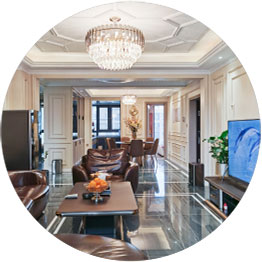 融合現代與古典風,硬裝偏現代,軟裝偏古典,給人一種時尚奢華品位不失現代感和精致感。